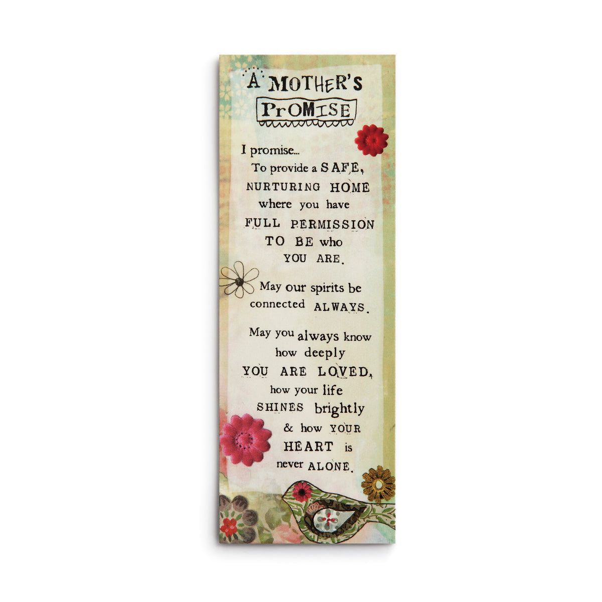 Kelly Rae Roberts has added a new style of gift books for 2018! They are her manifesto line and includes a cute magnet that is 2" wide by 5" long. The magnet is in a sleeve just inside the book. The Magnet says: A Mothers Promise I promise to provide a safe, nurturing home where you have full permission to be who you are. May our spirits be connected always. May you always know how deeply you are loved, how your life shines brightly & how your heart is never alone. The book is 4 1/2" wide by 7" deep. The Motherhood Manifesto book pages say: On the front cover: The gift of motherhood. A mothers promise. Manifesto book by Kelly Rae Roberts. Inside to book the pages say: I promise to come alive with joy when you enter the room. I want you to feel loved and celebrated. I promise to encourage you to dream big and reach toward possibilities. I promise to create, play, dance, and sing with you, Joyful creative abandon will be valued. I promise to show up, be present, and truly engaged when we're together. I want you to be seen and heard.I promise to practice gratitude with you so that we can feel joy and abundance in all things. I promise to provide a safe, nurturing home Where you have full permission to be who you are. May our spirits be connected always. May you always know how deeply you are loved. On the back of the book it says: Kelly Rae Roberts let art out, Let love in.